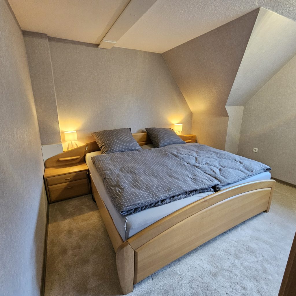 Erleben Sie erholsame Nächte in unserem großzügigen Doppelbett mit Komfortgröße.